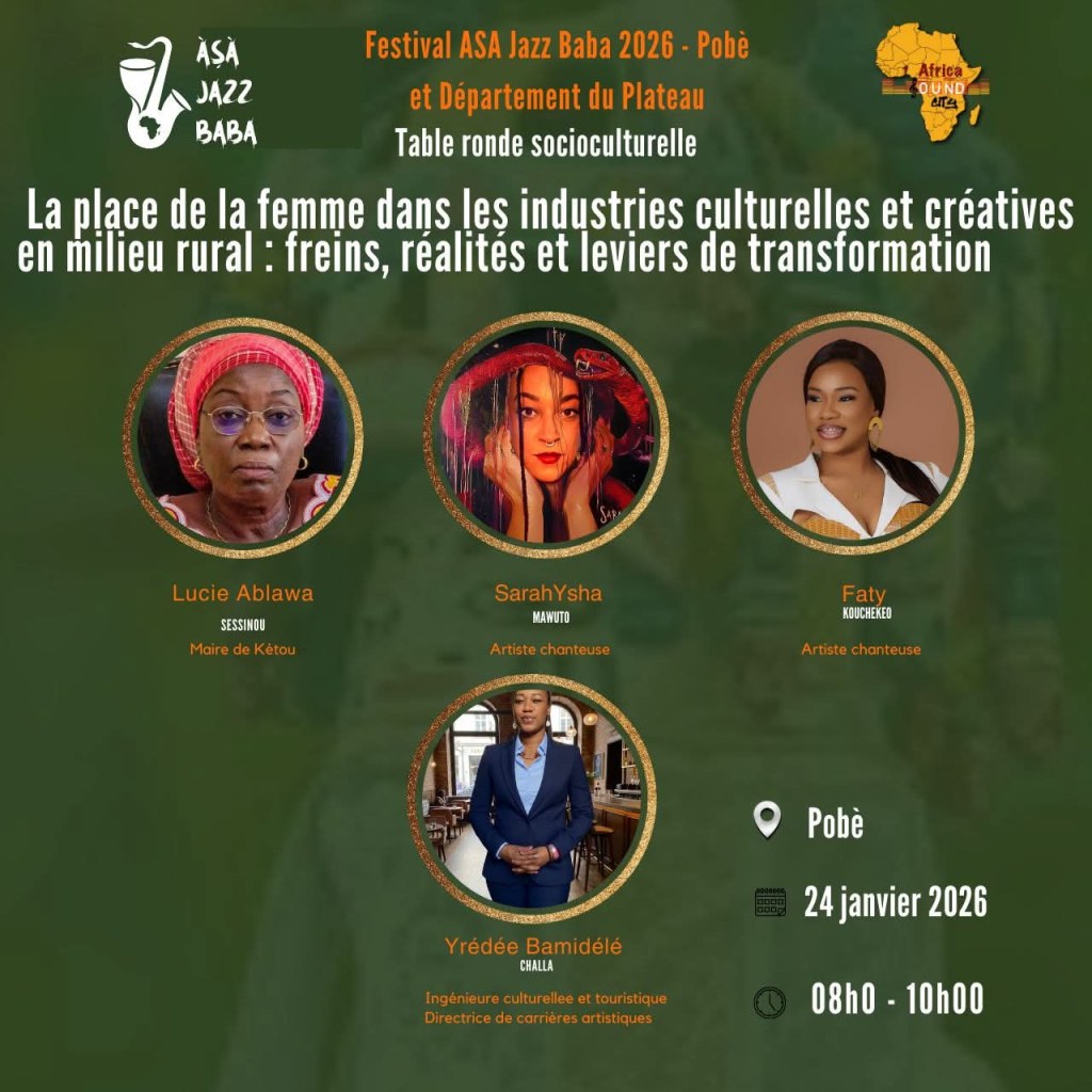 D’abord, une table ronde consacrée à la place des femmes dans les ICC en milieu rural, réunissant élues locales, ingénieures culturelles et artistes, parmi lesquelles Lucie Ablawa Sessinou, Maire de Kétou, SarahYsha Mawuto, Faty Kouchekeo et Yredée Bamidélé Challa. Les débats porteront sur les freins structurels, mais aussi sur les leviers de transformation et d’autonomisation.